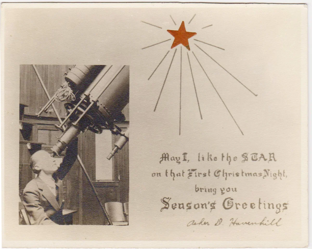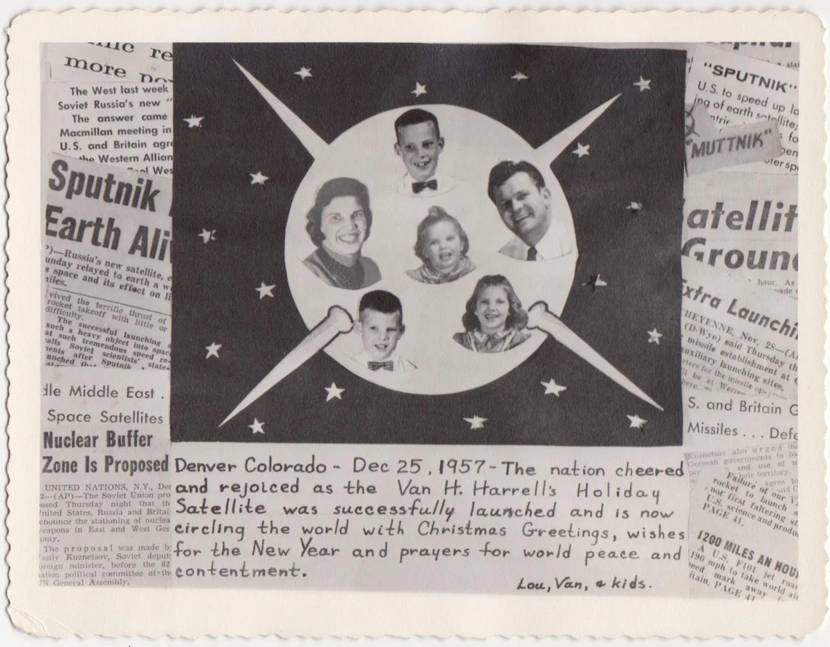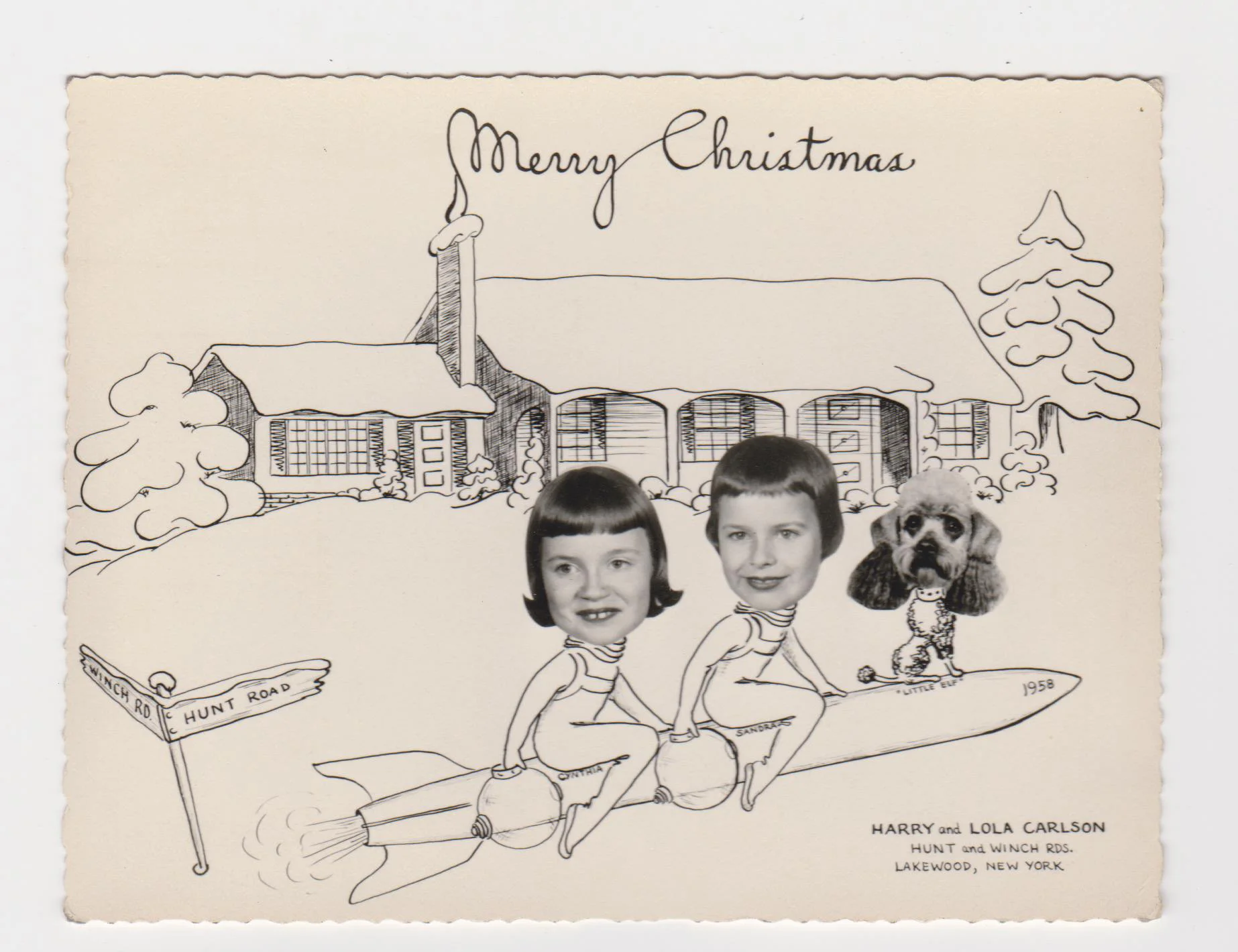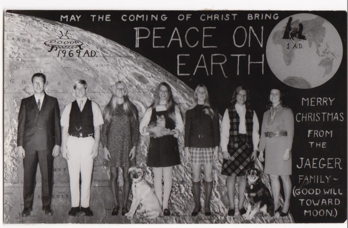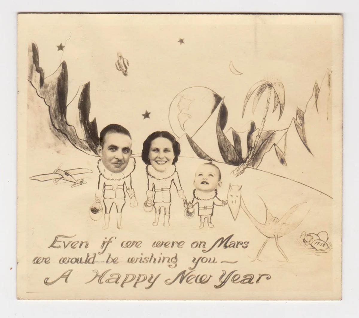 As we approach the holidays under a 2016 election cloud, there's talk of leaving, of escape, of anxiety over political family conflicts. For Democrats and Progressives, the ongoing joke in any election has been flight or permanent vacation to Canada, but we're probably not going anywhere soon. But how about outer space? There perhaps is no better way to enjoy this time of year than to get on a rocket or some sort of spaceship bound for another galaxy. Robert E. Jackson's growing collection of more than ten thousand snapshots contains dozens of absurdly outer space-themed vintage Christmas cards that have nothing, and yet somehow everything to do with the holidays. Like the Jaeger family, who superimposed themselves (along with their family dog), in front of a NASA photograph of the moon, all the while wishing peace on earth with the coming of Christ. Or a man named Asher D. Havenhill offering "Season's Greetings" through his telescope. These cards share a peculiar, yet heartwarming sense of holiday cheer, a brief and otherworldly pause as we approach the new year. Now if only we could find some intergalactic Kwanzaa or Chanukah cards, we'd all truly be at peace. See more of Jackson's collection by following him on Instagram.