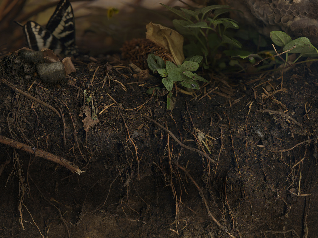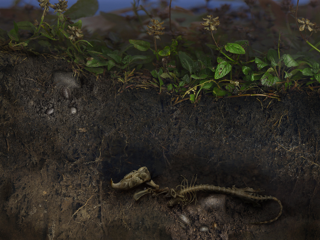 Melinda Hurst Frye makes pictures in the dirt. In her latest series, Underneath, worms, caterpillars, beetles, snails and anonymous animal skeletons intermingle with stringy roots and soil that are simultaneously mysterious and hyper real. They at once resemble homages to narrative painting and large scale Natural History museum dioramas, giving a private view into the world beneath our feet. The Seattle-based photographer creates these images in her yard - not with a camera, but with a flatbed scanner, rigging it to a power supply inside her house, and letting its slow, ultra-high resolution scan a landscape rarely explored with such intimacy. In her own words, “The surface is not a border, but an entrance to homes, nurseries, highways and graveyards.” In time for her solo exhibition, up through August at Seattle’s CORE Gallery, we spoke with Hurst Frye about the ideas and process behind this new work.