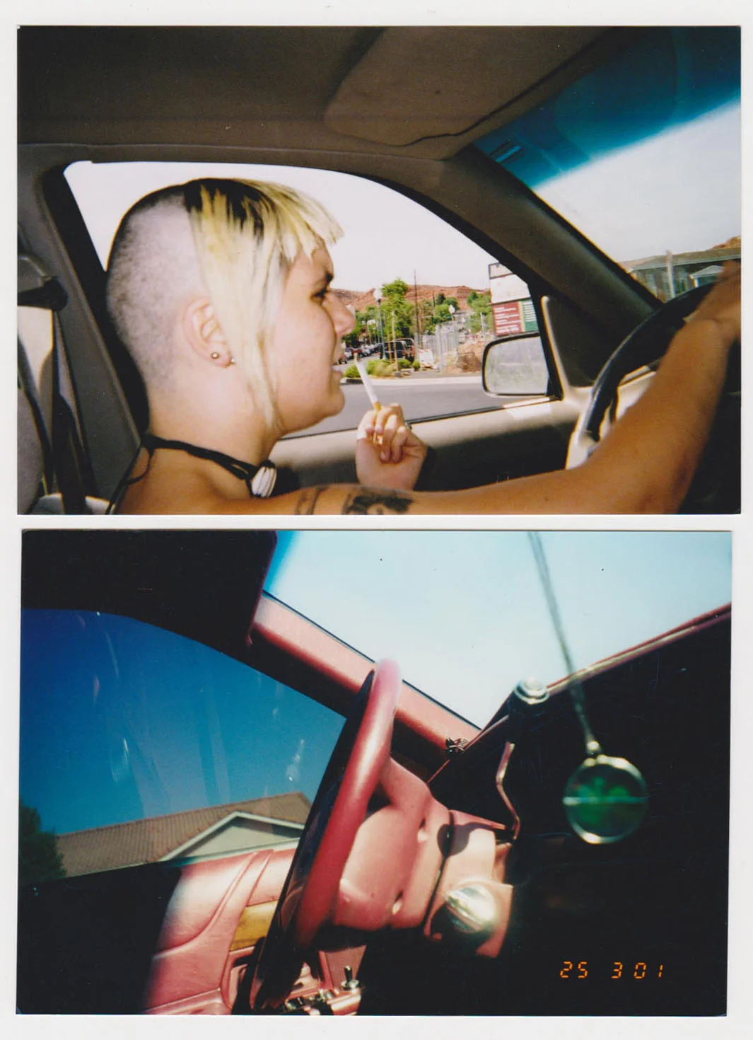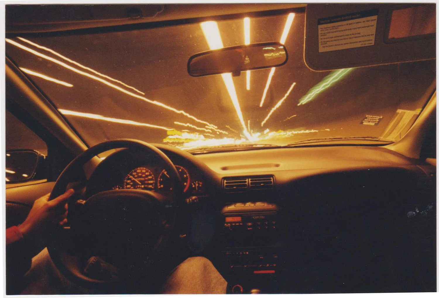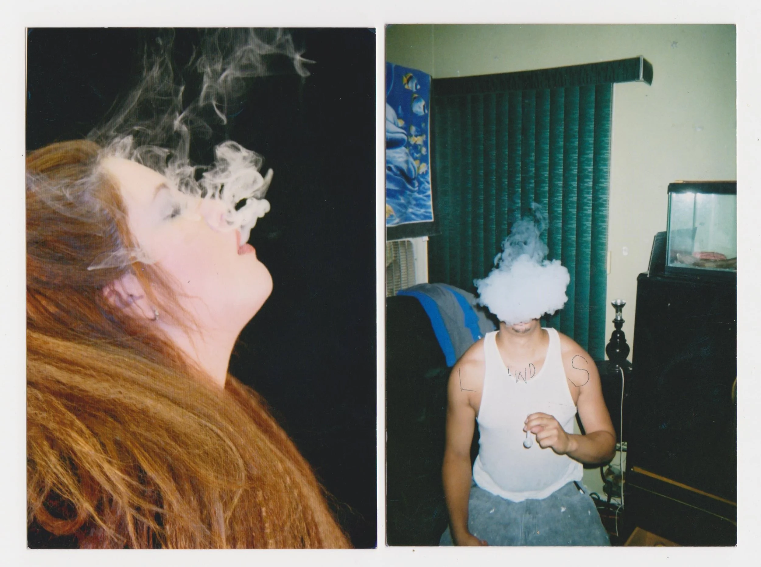 Consistently in these photographs, there was a steady decline in the occurrence of more classic, traditional celebrations. Popular early snapshot themes like the first day of school, the recording of one's first car, or even a "selfie" with a trophy animal, were gradually replaced by a new kind of uninhibited self-exploration, moving towards the increasingly narcissistic behavior prevalent today on Instagram and other social media. People got drunk in their cars and took photos. They photographed their friends and siblings in intentionally unflattering ways, blew clouds cigarette smoke into the lens. They flipped off their siblings as they photographed them, letting the flash illuminate their blurry middle finger in the forefront of the frame.