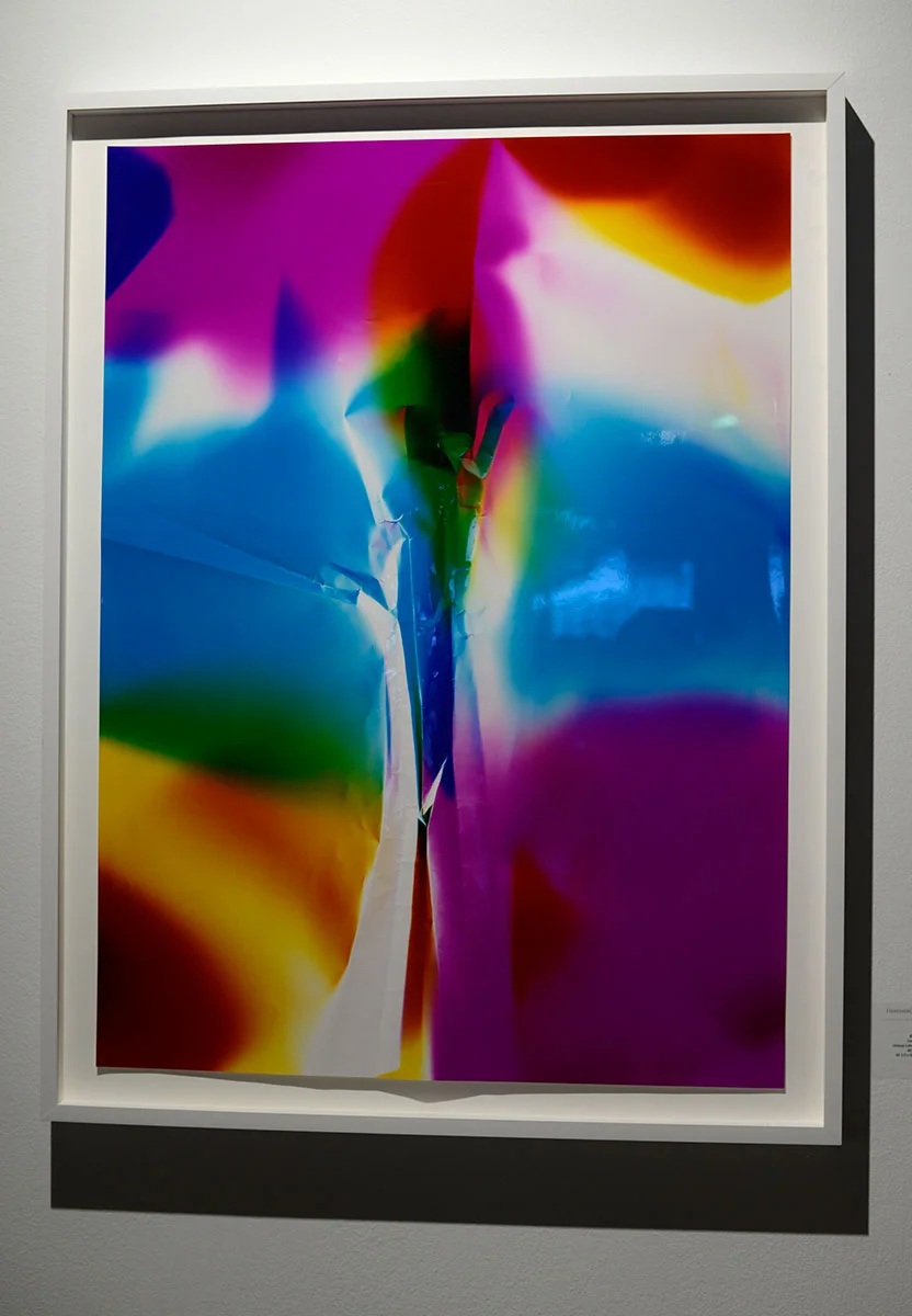 Ellen Carey, who critic Lyle Rexer called "one of the country's most committed experimental photographers," has been experimenting with photographic process since the 1970s, with a particular focus on Polaroid film and cameras. One featured work, Caesura, is part of a series of recent photograms. Carey creates these in a light-tight darkroom by first creasing and bending the paper and then exposing the desired section to a colored filtered light. Repeating this several times before flattening and processing the photogram, creates a vibrant work with colors overlapping and pooling across the paper. The final image is a unique work of photography in a palette rooted in Carey’s oeuvre; RGB, Yellow, Magenta, Cyan. Also included is a photograph from Carey’s “Pull’ series. It is a lens-less image created with Polaroid’s 20 X24 camera by manipulating specially made emulsion color pods. The Polaroid paper has a positive/negative which are mirror images of each other. These prints are cold-pressed mounted which brings the focus to the prints and adds to the lustrous nature of the work.