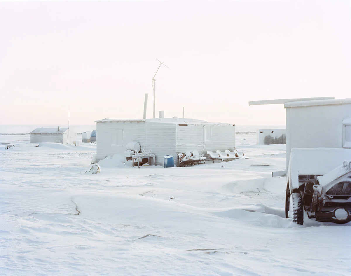 Eirik Johnson: I first traveled to Barrow, which is now officially called Utqiaġvik, on assignment to photograph scientists monitoring chemical plumes beneath the tundra, a legacy of the decommissioned US Navy Base outside of town. By day I would photograph the scientists, but during the late light of the Arctic summer, I would photograph on my own. That’s when I first encountered the cabins. I’ve had a long fascination for makeshift architecture, having photographed commercial mushroom foraging encampments and other strange structures in the past. That’s what drew me to the cabins. Each one was unique, fashioned out of found and salvaged materials, some quite humble in design and others more ambitious. In a sense, they reminded me of portraits of their makers.