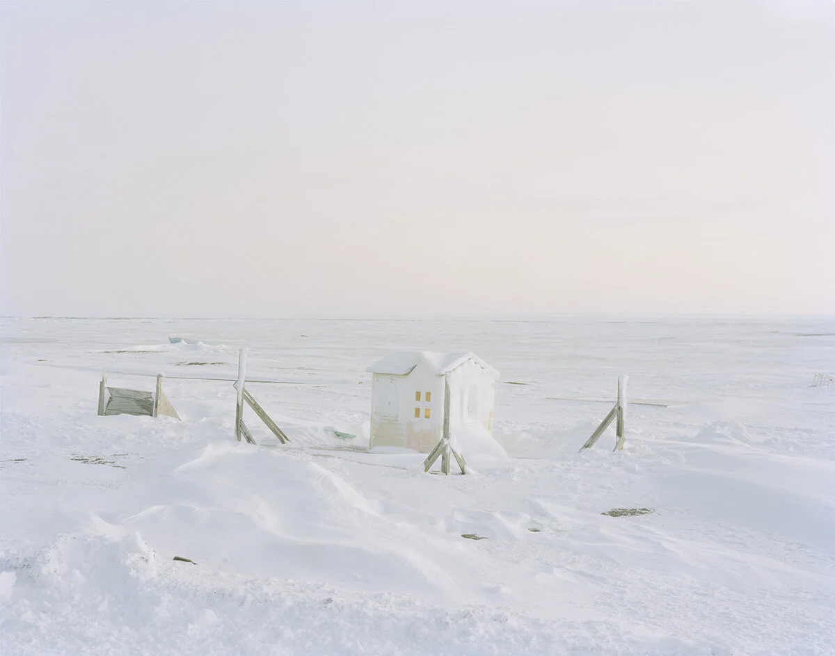 That in turn, sparked my interest in returning during the opposing seasonal extreme, the Arctic winter, when the sea ice has completely blanketed the lagoon and sea and the sun only rises enough to cast a brief window of subtle light upon the landscape before disappearing again. When I did return, it was nearly a year and a half later, so not only was I encountering an extreme seasonal shift but also the longer passage of time and the changes to the cabins that brought.