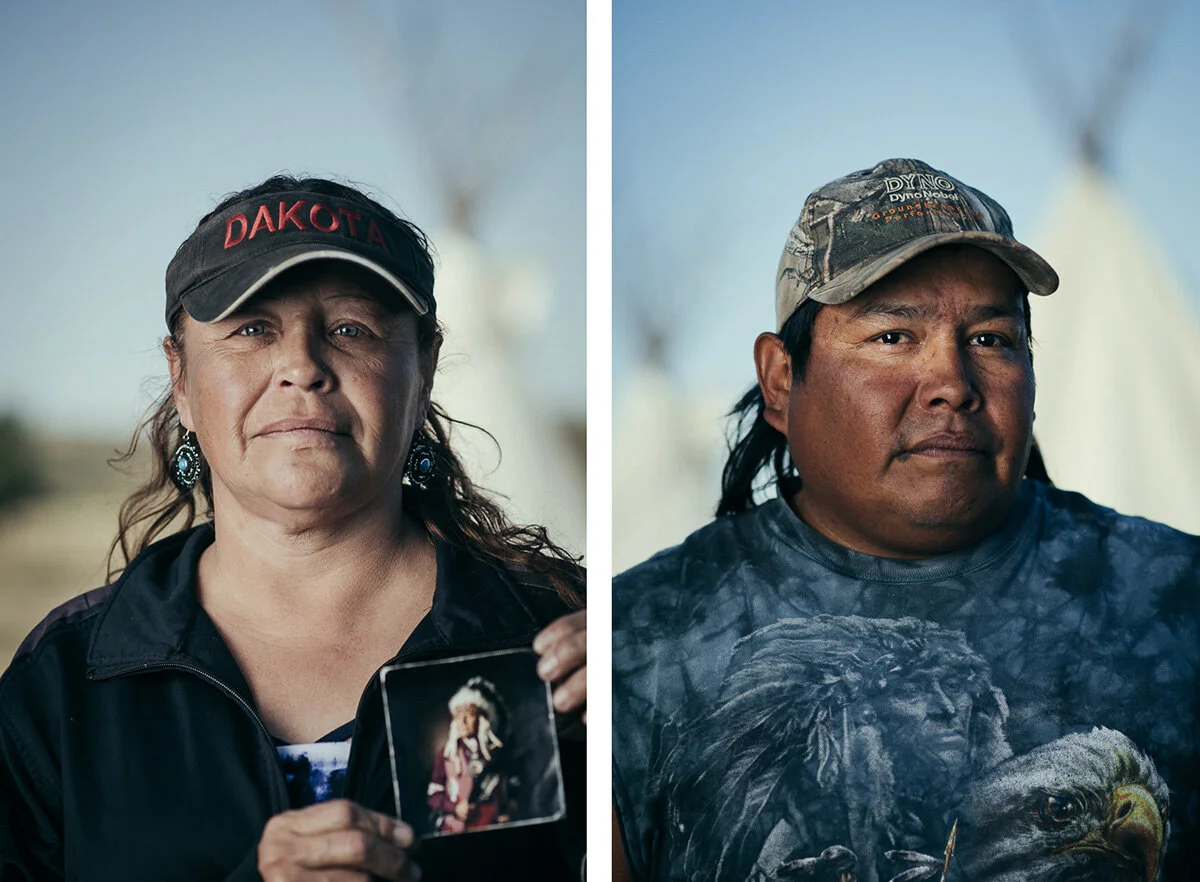 Dorothy Bird, a Crow Creek Sioux, holds a photograph of her grandfather. For the Dakota, the fight at Standing Rock goes deeper than the pipeline with a history that has affected generations. James Sazue, also of Crow Creek says, “A lot of people didn’t think they would ever see this happen again. The last battle.”