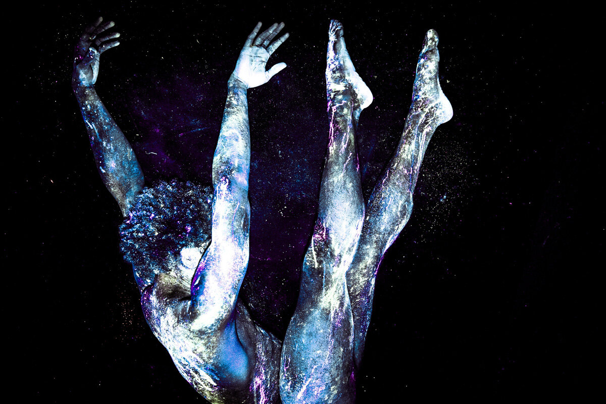 In 2017, Owunna began Infinite Essence, a series of glowing, ethereal photographs that elevate Black bodies to the cosmos. Owunna paints his models with fluorescent paint and uses his engineering background to enhance a standard flash with an ultraviolet bypass filter rendering only ultraviolet light. The resulting images expose viewers to what they might not otherwise see: a metaphor for the beauty, joy, and power of Black life that is often omitted from popular narratives. Infinite Essence is a haven – a safe space from centuries of systemic oppression. Owunna's muses are floating, content, and infinitely secure.