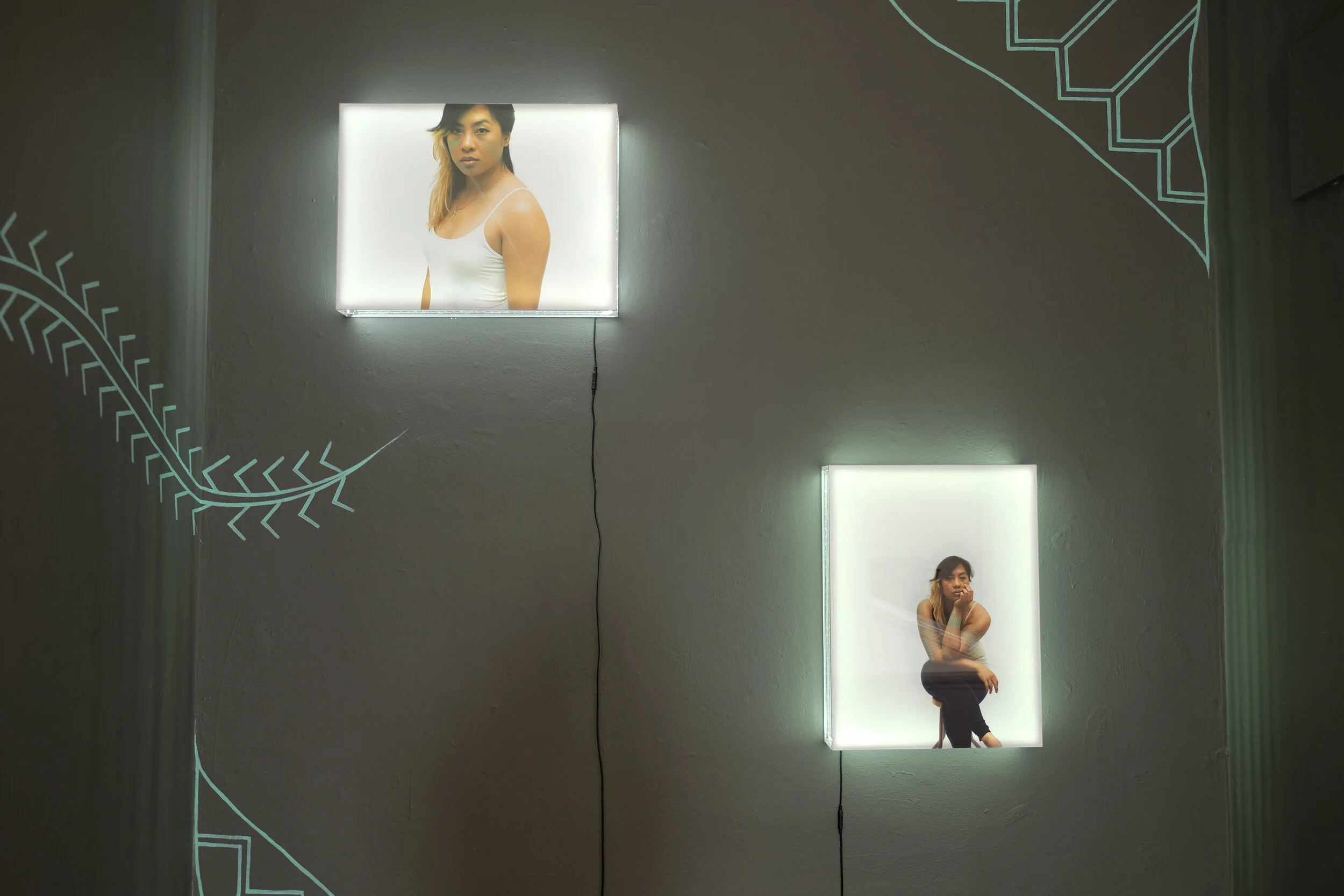 © Kimberly Acebo Arteche, “Ta,too Project (I and II)” (2014), Installation: archival print on backlit media, halogen light, 18 x 24 x 3 inches (image courtesy of Kim Arteche and Incline Gallery)