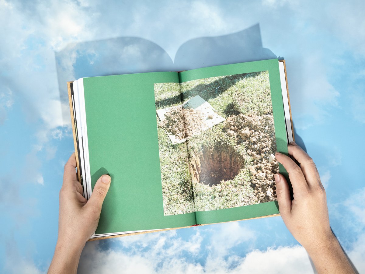 Published by Sleeper Studio, Mantle’s first monograph is a meandering collection of visual clues with no clear solution. A found sculpture of a golden ear. Various references to holes - both literal and metaphoric. Anonymous gravestones leaning and waiting for repair. Bodies emerging from the woods. Faces obscured by sweatshirts or wisps of hair. Hints to treasures never to be found – riddles we might never decode.