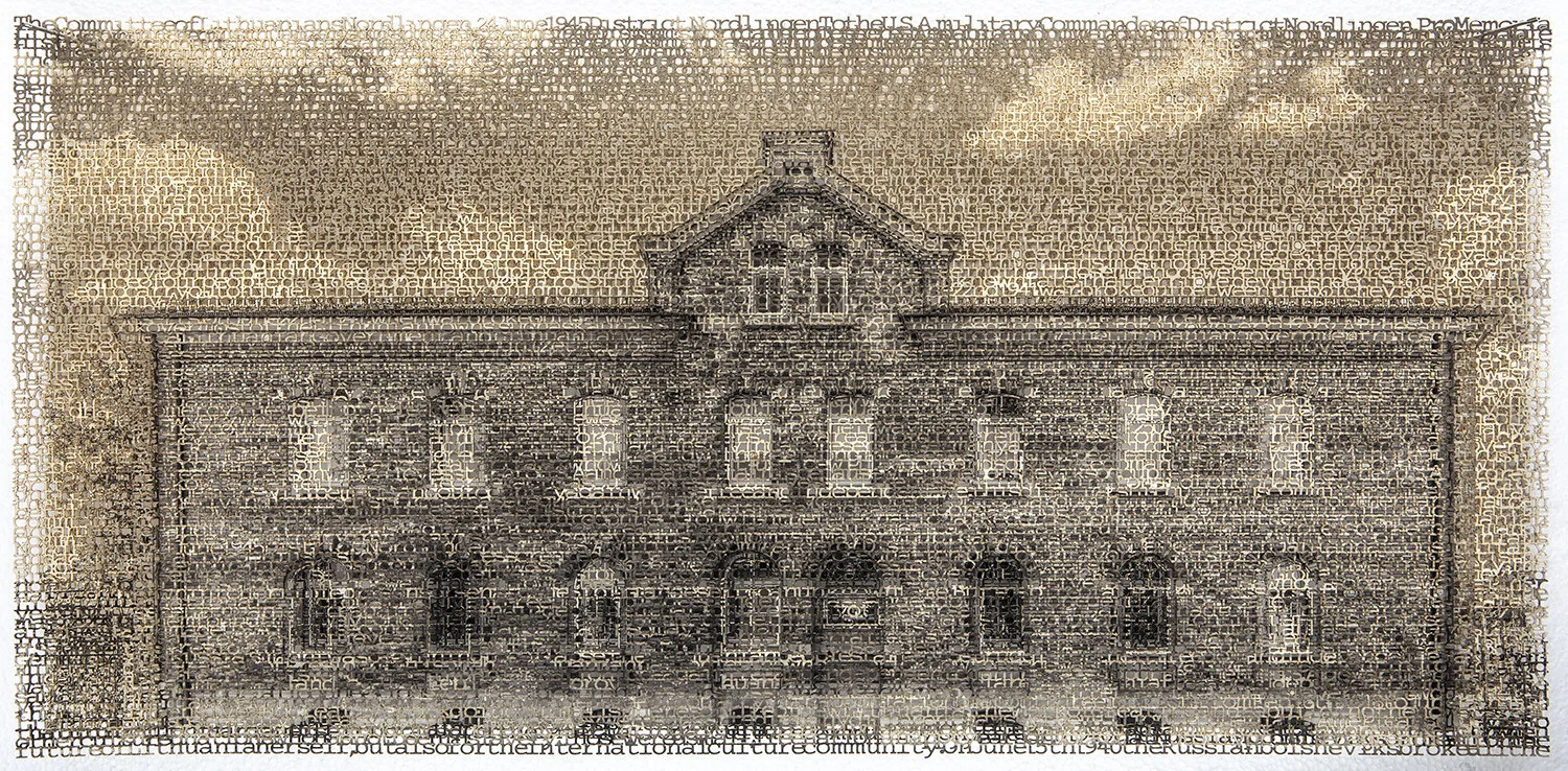 Svalbonas: I started using a laser cutter with my series Displacement which focuses on Baltic refugee camps in Germany after WWII. I had come back from my first visit to Germany, locating these spaces, and had no idea how I wanted to approach the work. The buildings themselves weren’t remarkable spaces and I was constantly reminded, while documenting them, how little they spoke of the tumultuous past and the fragile lives that inhabited them. I was also reading and re-reading plea letters that I found at various archives in my search for these spaces.