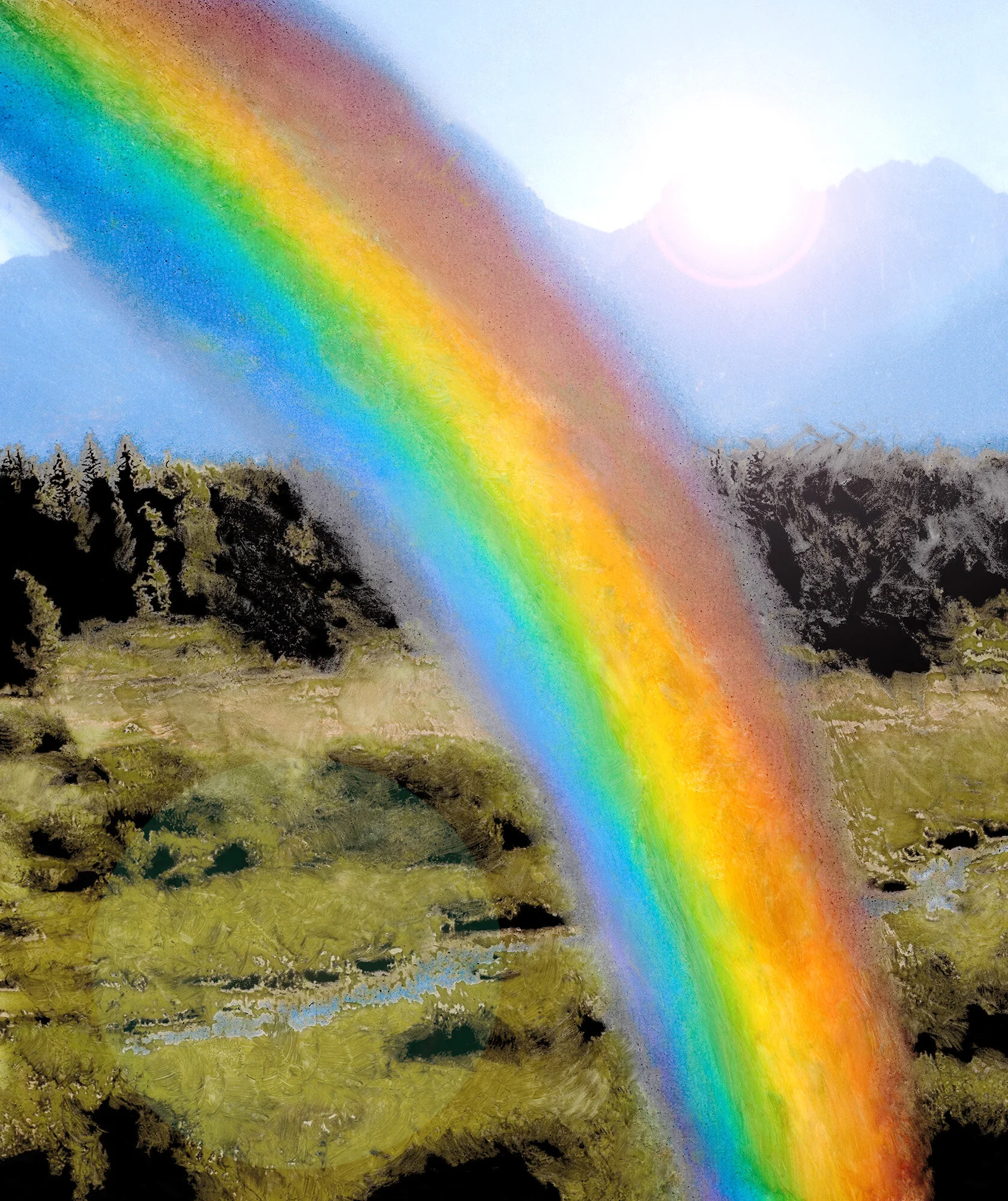 Chirping birds, boring cat photos, clouds, rainbows, and other dentist-office-poster images fade and break apart at varying degrees on the page, often looking like a marriage of classic impressionism and amateur “Microsoft-paint-ism”…. and that’s precisely the point.