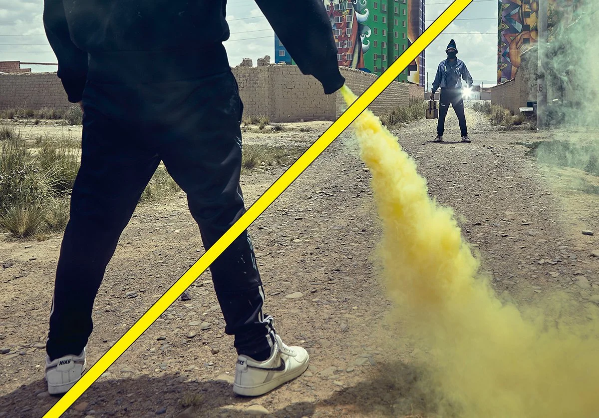 Estol: In these pictures, the mirrors work as special shine power tools. The most challenging aspect was to produce these special effects on a low budget and without post-production to be more authentic. The inspiration for the shoe shiners came from dragon ball cartoons and other Japanese comics.